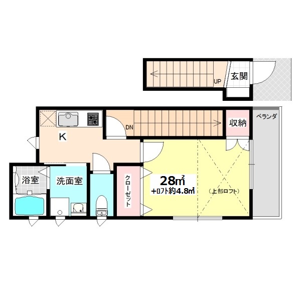 木造2階建 2階部分 1K 28㎡