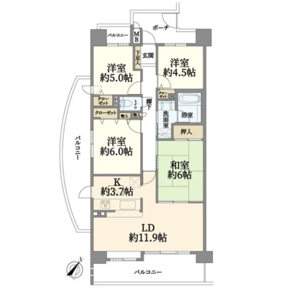 専有面積、広々80.04?の4LDK♪